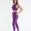 Produto desenvolvido em tecido de Poliamida textura canelado toque macio e aveludado, leve brilho, feito com compressão ajustada para prática de atividades físicas, textura moderna conferindo beleza a peça. Recortes que valorizam a silhueta do corpo.