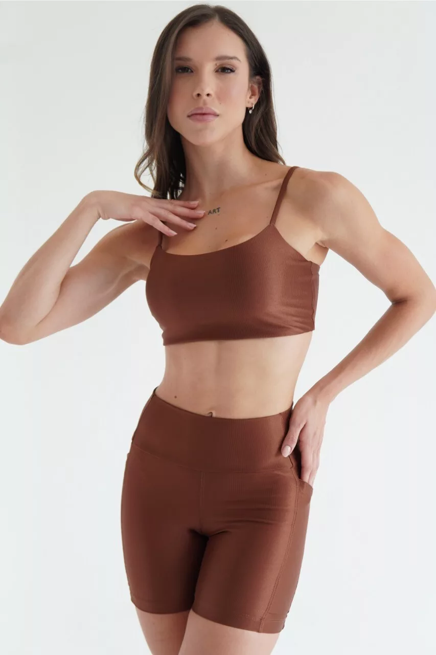 Produto desenvolvido em tecido de Poliamida textura canelado toque macio e aveludado, leve brilho, feito com compressão ajustada para prática de atividades físicas, textura moderna conferindo beleza a peça.