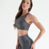 Produto desenvolvido em tecido de Poliamida textura canelado toque macio e aveludado, leve brilho, feito com compressão ajustada para prática de atividades físicas, textura moderna conferindo beleza a peça.