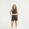 Produto desenvolvido em tecido de Poliamida textura canelado toque macio e aveludado, leve brilho, feito com compressão ajustada para prática de atividades físicas, textura moderna conferindo beleza a peça.