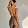 Top possui elástico embutido em toda sua estrutura, com decote nas costas que dão um charme todo especial. Não indicado para exercícios de alto impacto. Forro interno do mesmo tecido do top.