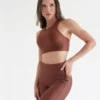 Produto desenvolvido em tecido de Poliamida textura canelado toque macio e aveludado, leve brilho, feito com compressão ajustada para prática de atividades físicas, textura moderna conferindo beleza a peça. Recortes que valorizam a silhueta do corpo.
