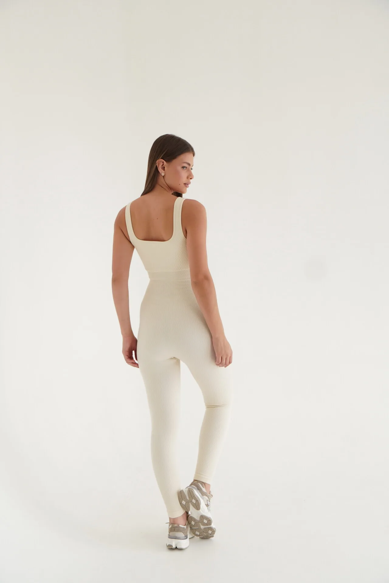 Corpo do macacão com tecnologia seamless, modelador com bojo removivel.