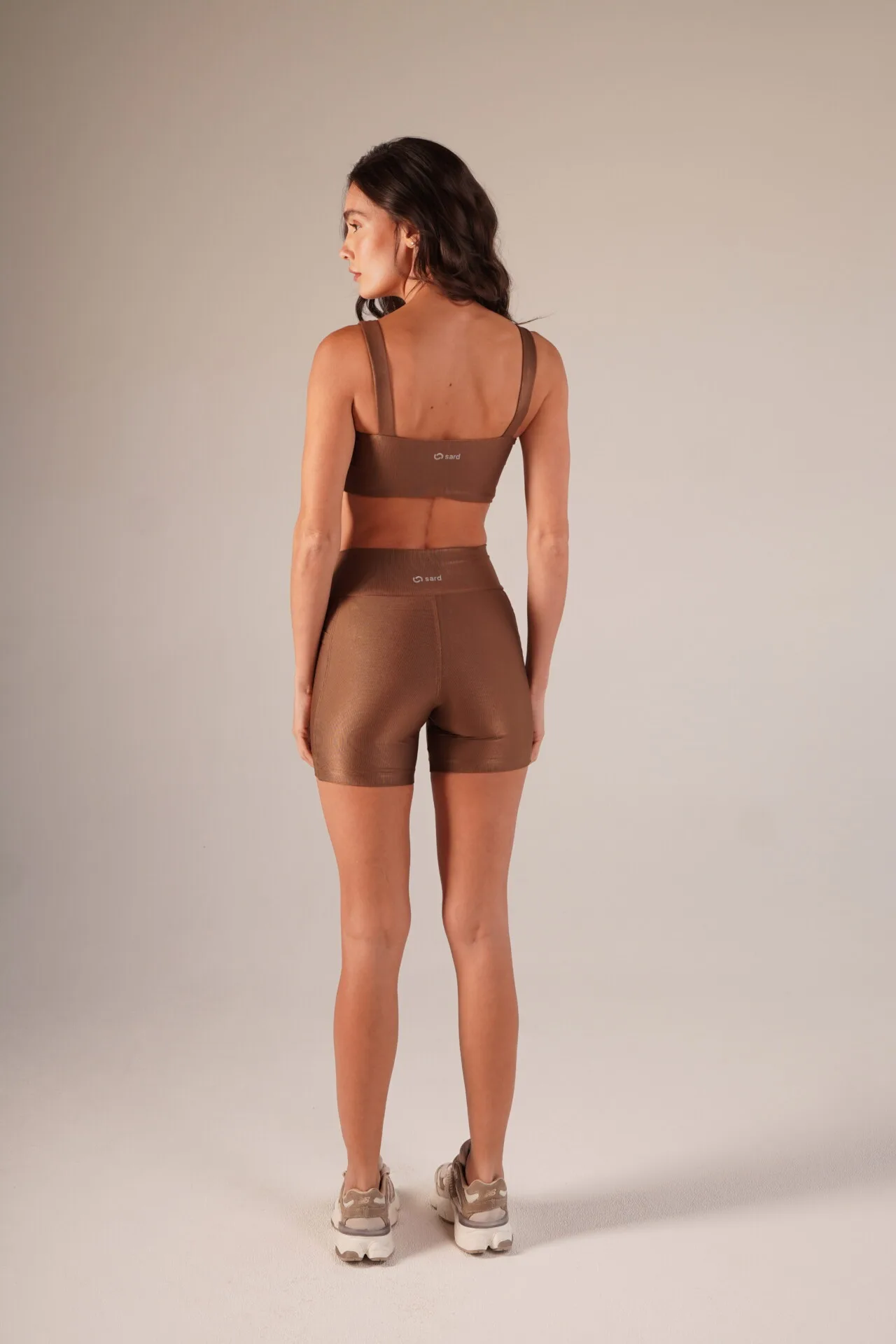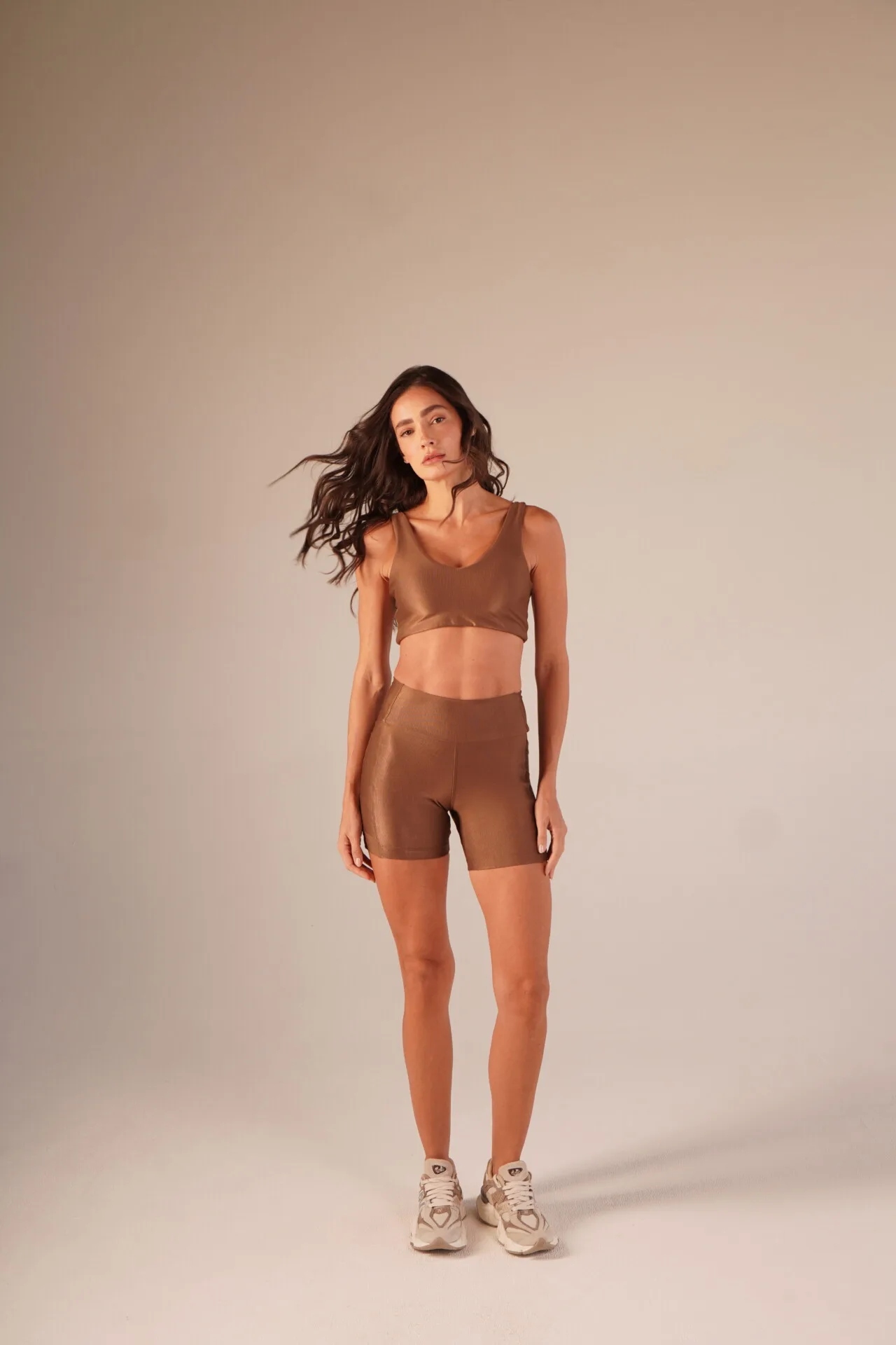 Produto desenvolvido em tecido de Poliamida textura canelado toque macio e aveludado, leve brilho, feito com compressão ajustada para prática de atividades físicas, textura moderna conferindo beleza a peça.