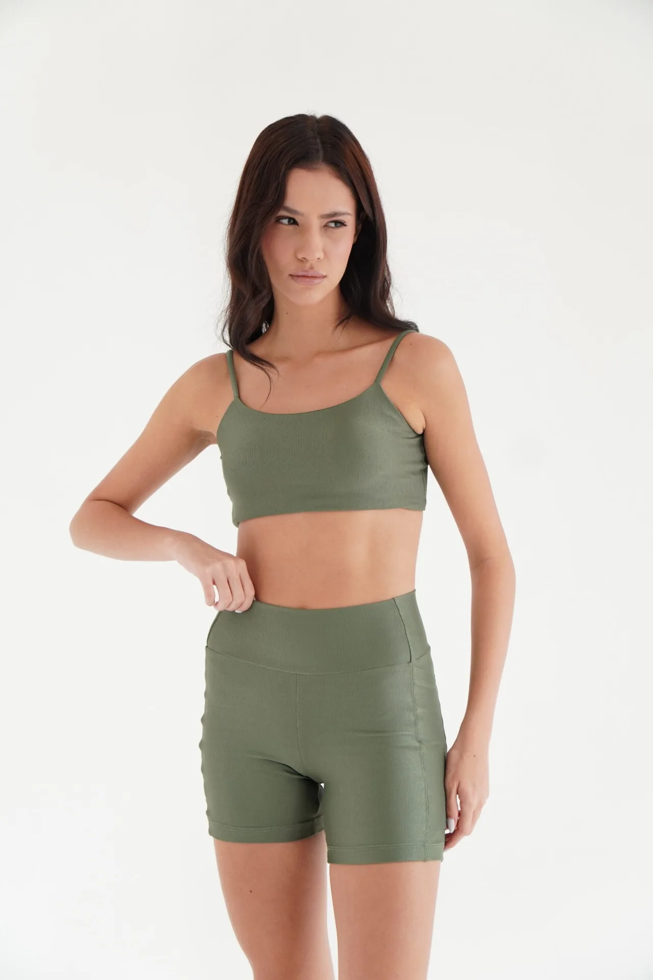 Produto desenvolvido em tecido de Poliamida textura canelado toque macio e aveludado, leve brilho, feito com compressão ajustada para prática de atividades físicas, textura moderna conferindo beleza a peça.