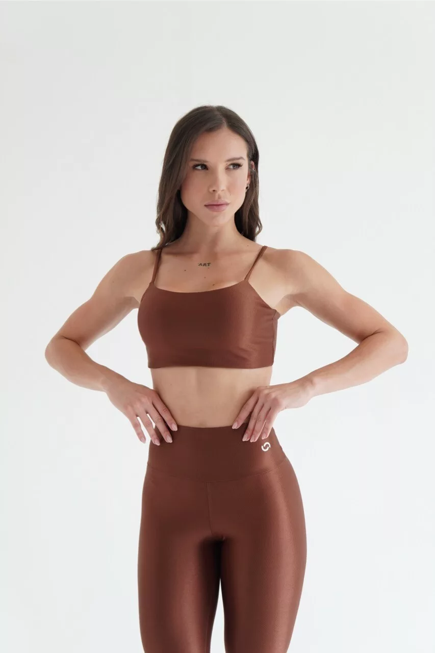 Top de alta sustentação, possue um shape reto estilo faixa. Essa modelagem traz a delicadeza e o conforto das alças finas.